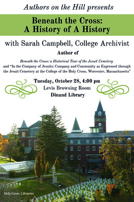 Beneath the Cross: A History of A History highlights Sarah Campbell’s journey as an author of two publications about the Jesuit Cemetery at the College of the Holy Cross. This lecture will focus on Campbell’s writing process, which involved expanding a small collection of notes about key figures laid to rest in the Jesuit Cemetery into both a full- fledged book celebrating the College’s 175th Anniversary and a peer-reviewed journal article.