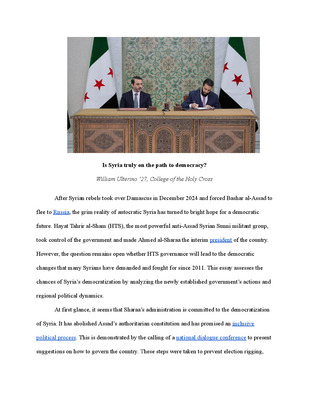 This op-ed assesses the plausibility that Syria’s new government will usher in the first true democracy for an Islamic nation in the Middle East.
